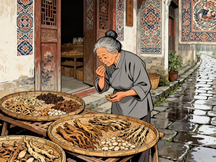 这天午后,雨总算停了,太阳透过云层漏下几缕光,照在青石板路上,泛着淡淡的暖意。陈阿婆搬了张小板凳坐在门口,把药柜里受潮的药材拿出来晒。她动作慢,每拿起一味药材,都要仔细闻闻、摸摸,像对待老朋友似的。当归要选断面金黄的,甘草得挑根须完整的,就连最普通的金银花,她也要拣掉里面的碎渣 —— 这些都是老伴儿教她的,她说 “药材好,药效才好,不能糊弄人”。